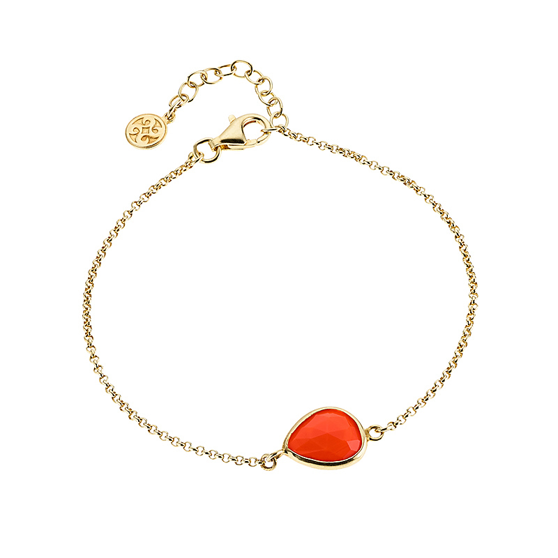 Adorn your wrist with one of our favorite pieces. This stunning bracelet features an orange color stone that will upgrade easily every look and make you feel beautiful all day. It is made by gold plated silver 925.
