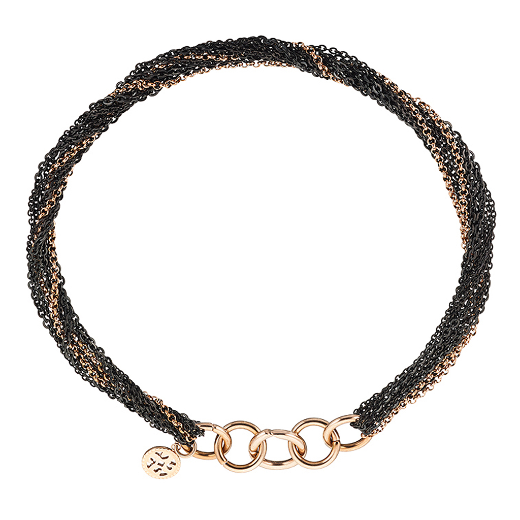 Ένα κόσμημα αποτελούμενο από πολλές λεπτές αλυσίδες μαζί σε 2 αποχρώσεις, διακοσμημένο από ενωμένους κρίκους που έχουν τη δυνατότητα να ανοίγουν ώστε να μπορείτε να προσθέσετε το αγαπημένο σας μενταγιόν. Αποτελεί ένα από τα αγαπημένα κομμάτια της Volcanic Rock συλλογής.