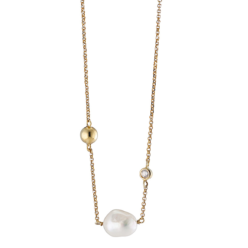 Με τον κομψό και εκλεπτυσμένο σχεδιασμό του, αυτό το κολιέ θα εντυπωσιάσει κάθε φορά που θα επιλέγετε να το φοράτε. Σχεδιασμένο από λεπτή επίχρυση αλυσίδα και διακοσμημένο με λευκά κρύσταλλα και λευκή πέρλα. Ο απλός και κομψός σχεδιασμός του το καθιστά τέλειο για το καθημερινό σας outfit.