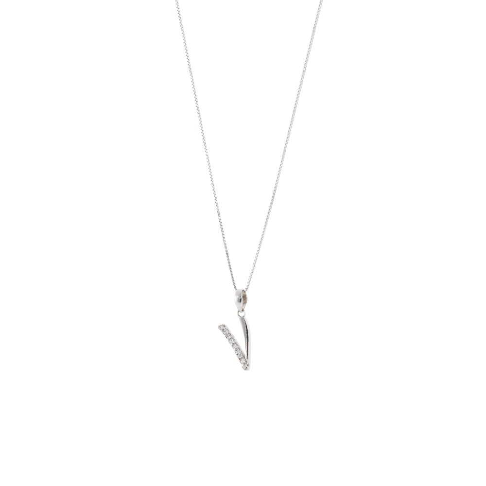 Κολιέ ασημένιο με γράμμα V και λευκά ζιργκόν