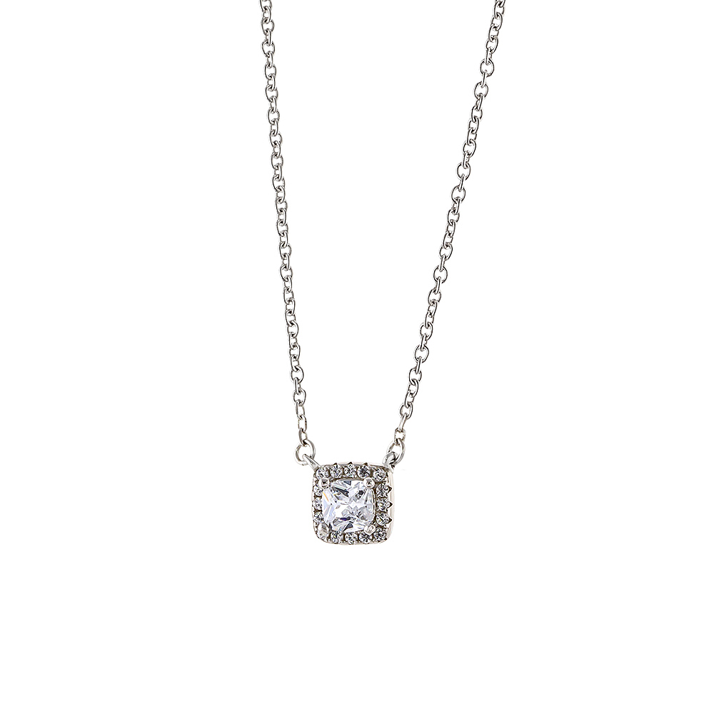 Κολιέ με λεπτή αλυσίδα από ασήμι 925 με ένα υπέροχο charm που διαθέτει ένα εντυπωσιακό κρύσταλλο cz στο κέντρο, το οποίο διακοσμείται από πολλά μικρότερα λαμπερά cz.