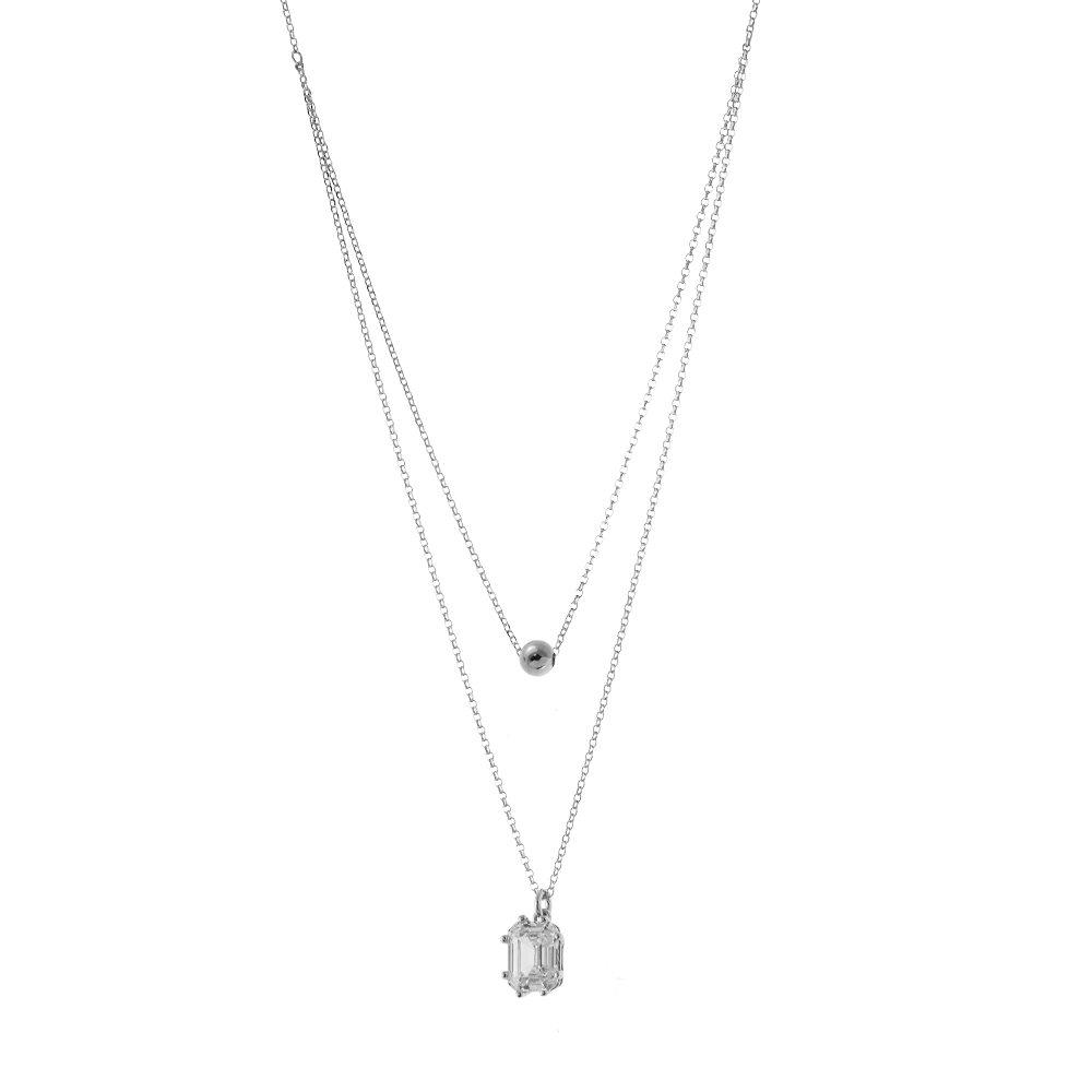 Κολιέ Gifting ασημένιο με διπλή αλυσίδα, μπίλια και λευκό ζιργκόν