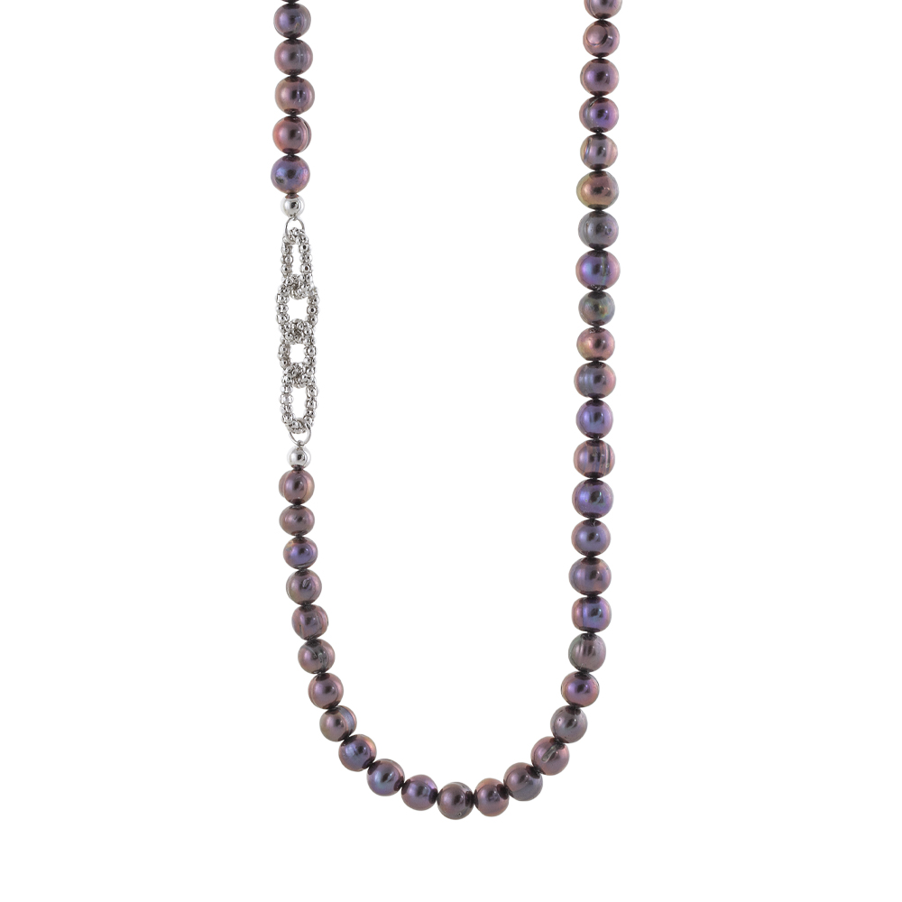 Κολιέ Holiday ασημένιο με γκρι πέρλες και καδένα