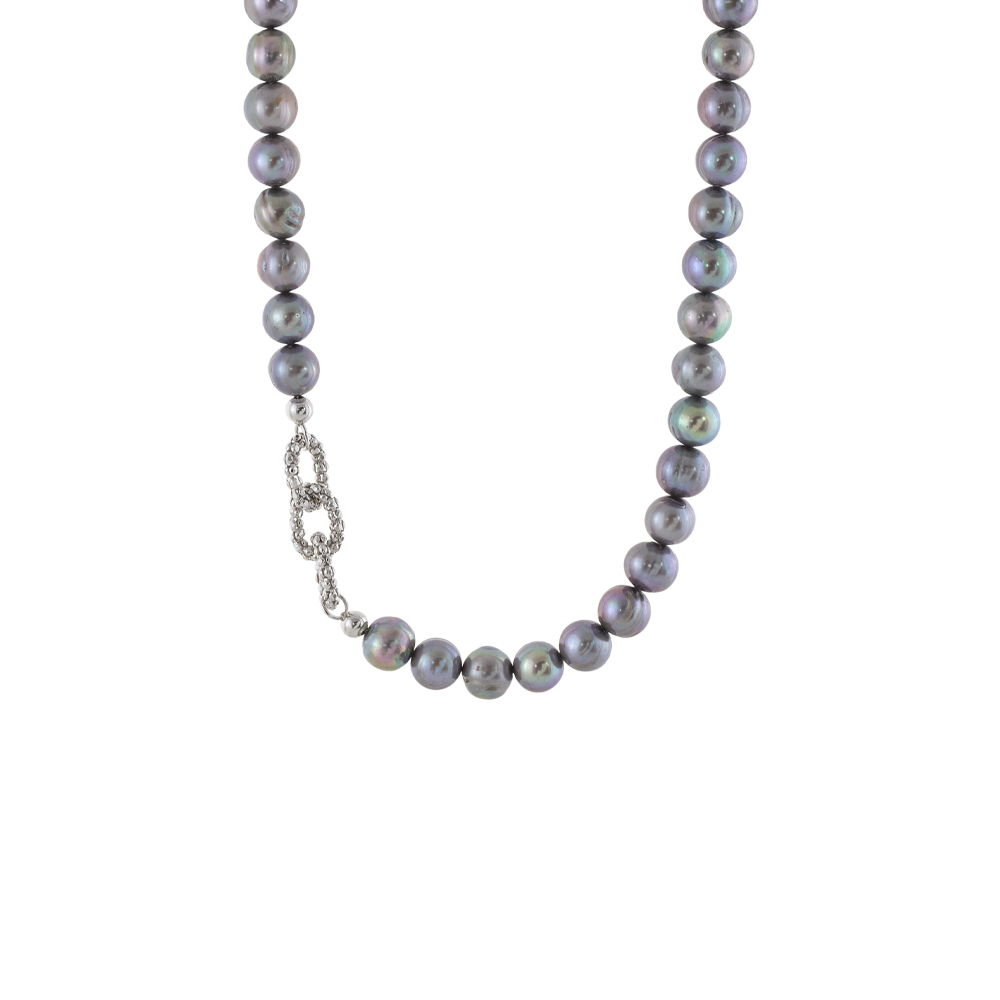 Κολιέ Holiday ασημένιο με γκρι πέρλες και καδένα