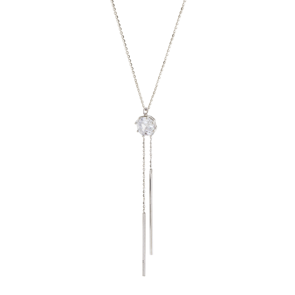 Κολιέ Gifting ασημένιο με λευκό ζιργκόν και αλυσίδες