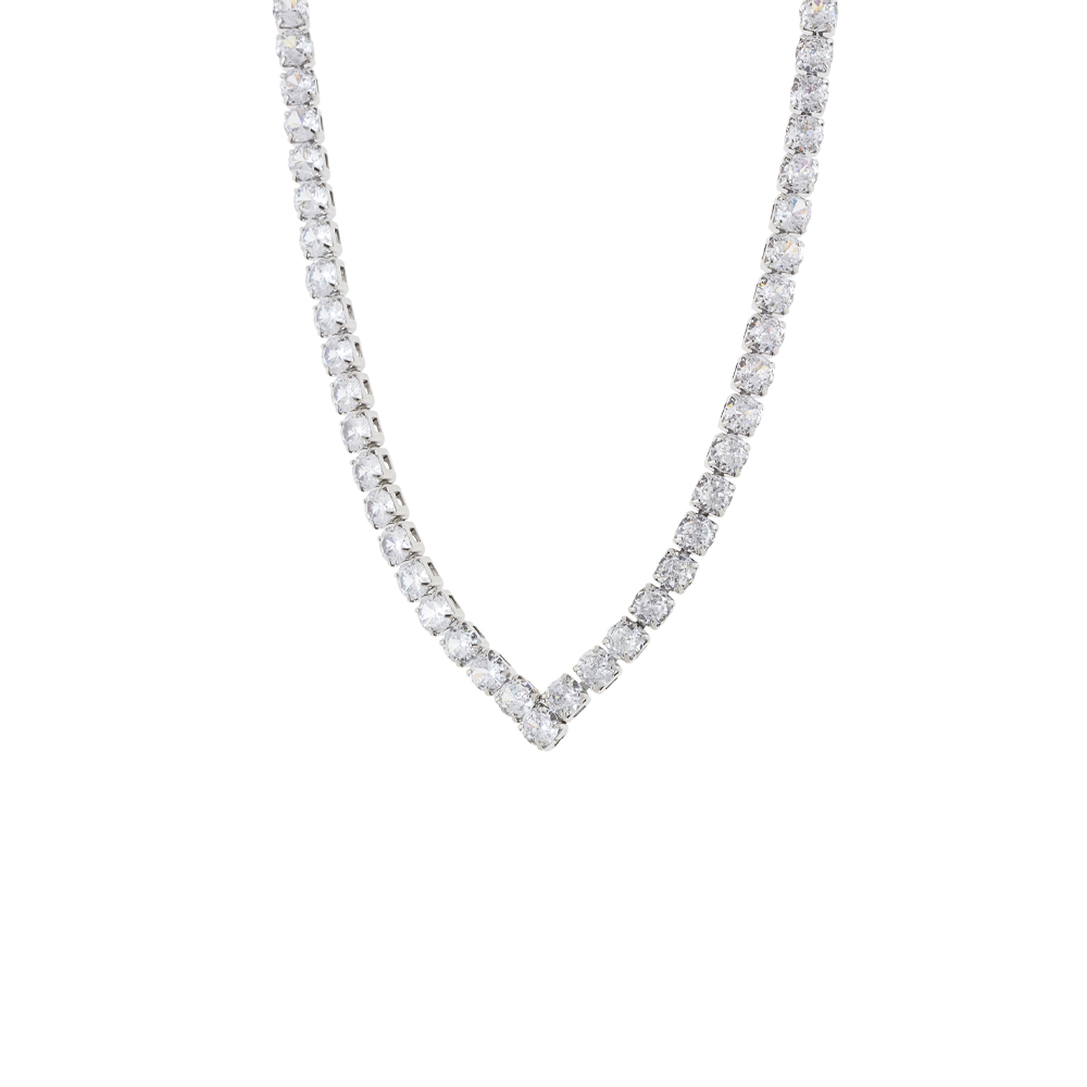 Κολιέ Party ατσάλινο choker “V” με λευκά ζιργκόν 0.5 cm