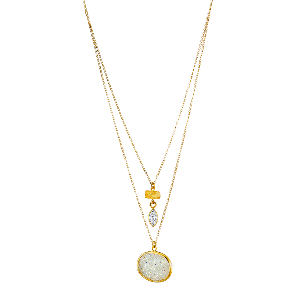 Κολιέ Sunset ασημένιο επίχρυσο διπλό με λευκά ψήγματα κρυστάλλων και στοιχείο