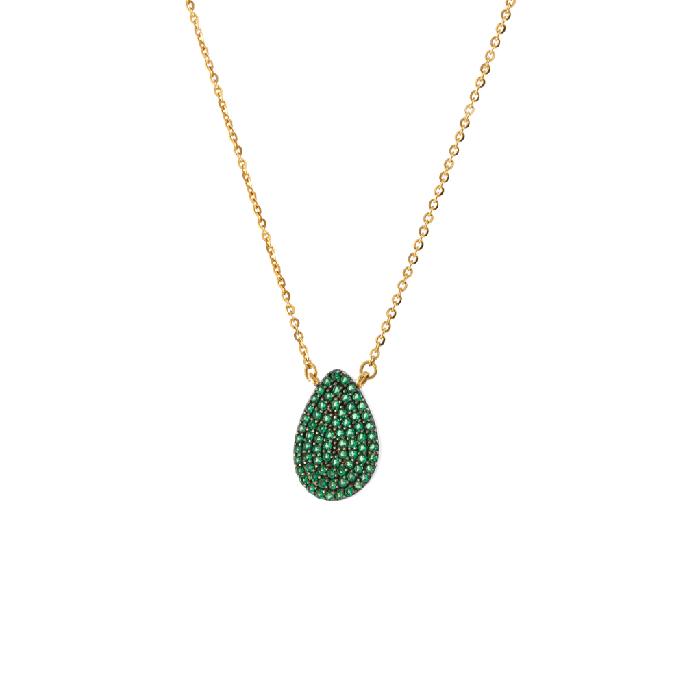 Κολιέ Red Carpet ασημένιο επίχρυσο δάκρυ με πράσινα ζιργκόν