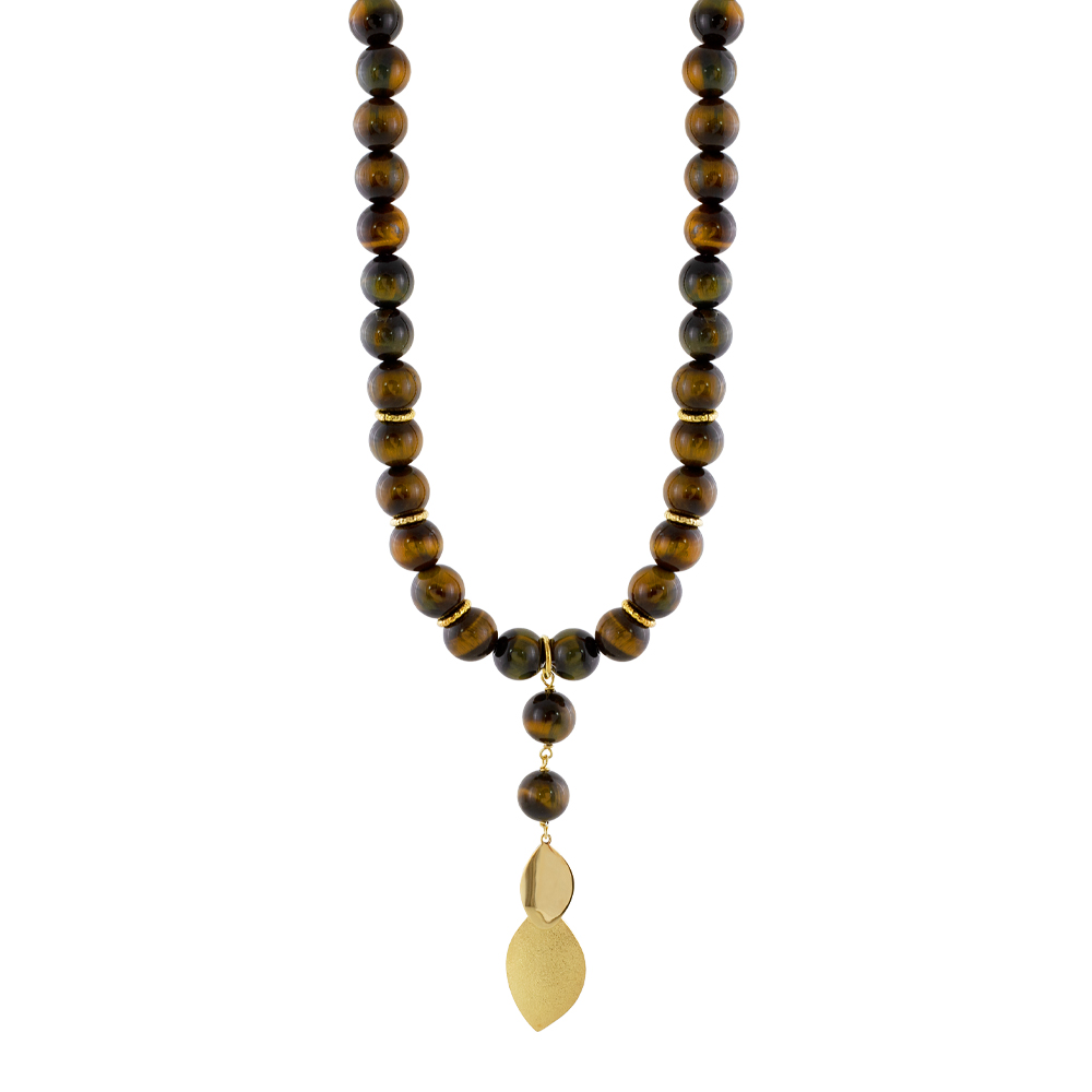 Κολιέ Amal ασημένιο επίχρυσο “Y” με καφέ πέτρες και στοιχείο
