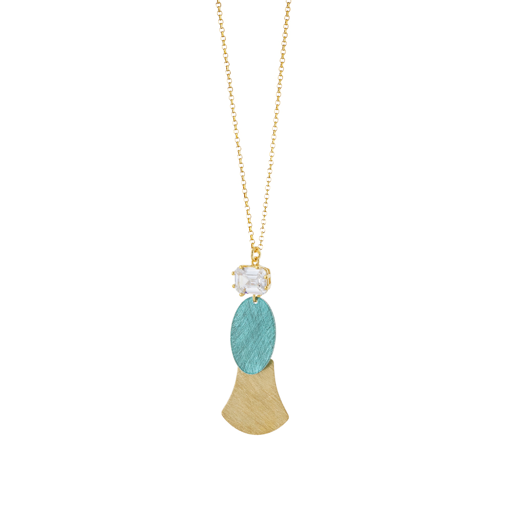 Κολιέ Helianthus ασημένιο επίχρυσο – πράσινο με στοιχεία και ζιργκόν