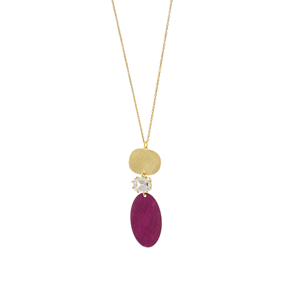 Κολιέ Helianthus ασημένιο επίχρυσο – μωβ με στοιχεία και ζιργκόν