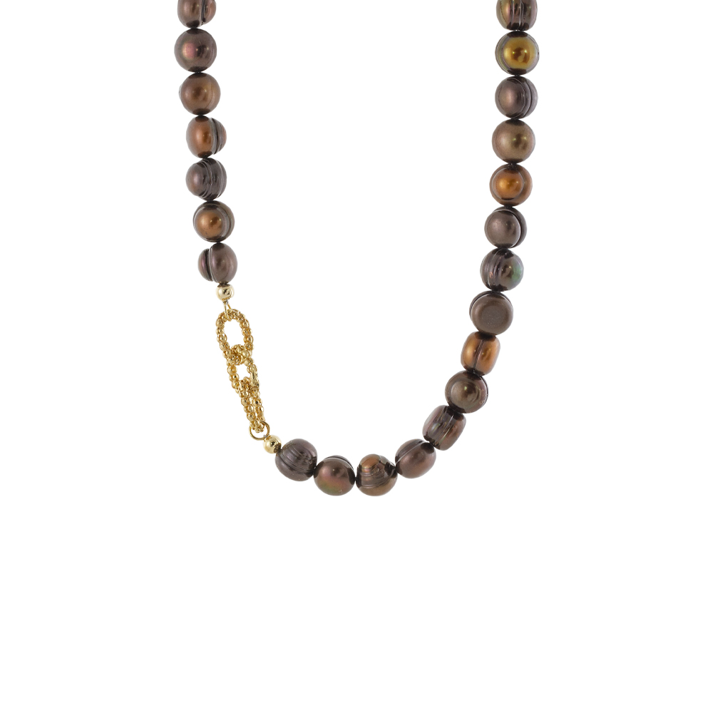 Κολιέ Holiday ασημένιο επίχρυσο με καφέ πέρλες και καδένα