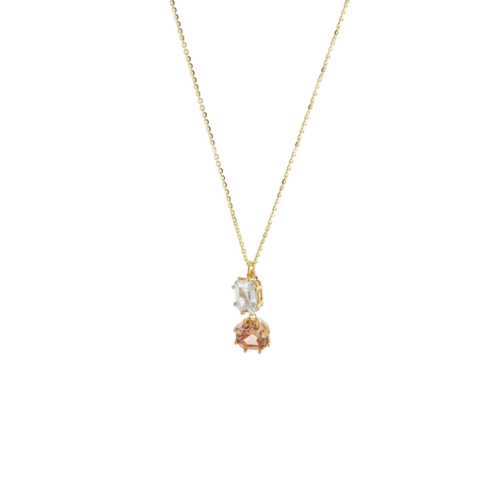 Κολιέ Gifting ασημένιο επίχρυσο με λευκό και champagne ζιργκόν