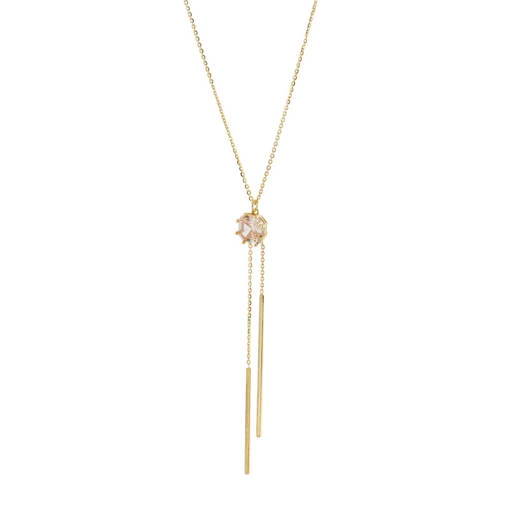 Κολιέ Gifting ασημένιο επίχρυσο με champagne ζιργκόν και αλυσίδες