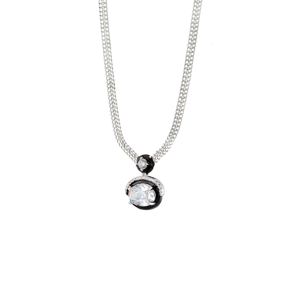 Κολιέ Party μεταλλικό ασημί με μαύρο σμάλτο και λευκά κρύσταλλα