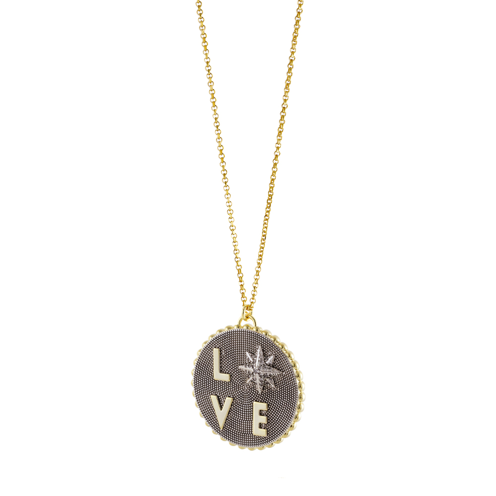 Κολιέ Natrix Valentine’s μεταλλικό επίχρυσο μακρύ με στοιχείο LOVE και ζιργκόν
