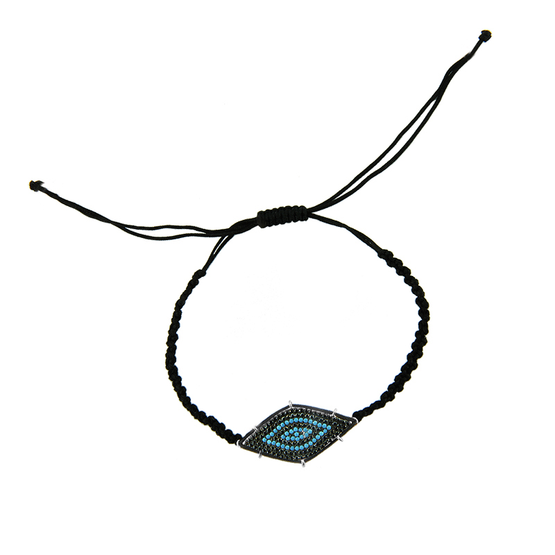 Βραχιόλι Talisman ασημένιο μακραμέ με τιρκουάζ πέτρες και μαύρα ζιργκόν