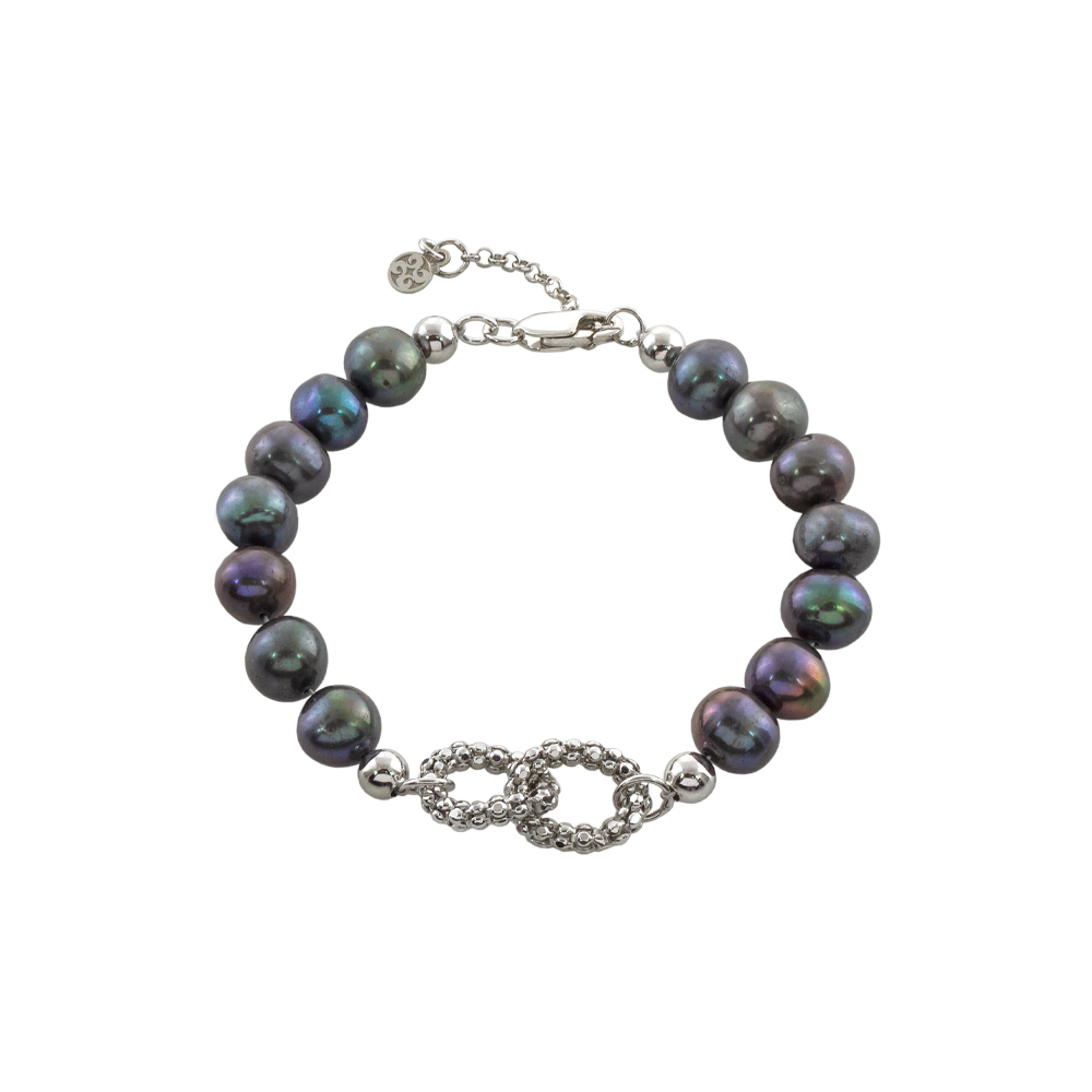 Βραχιόλι Holiday ασημένιο με γκρι πέρλες και καδένα