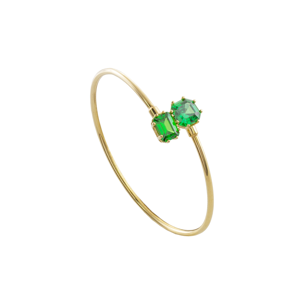 Βραχιόλι Gifting ασημένιο επίχρυσο σταθερό με πράσινα ζιργκόν