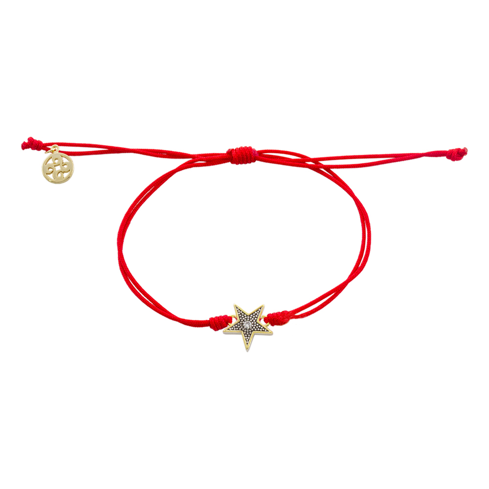 Βραχιόλι Lucky Charm κόκκινο κορδόνι με μεταλλικό επίχρυσο αστέρι και λευκό ζιργκόν 1.2 cm