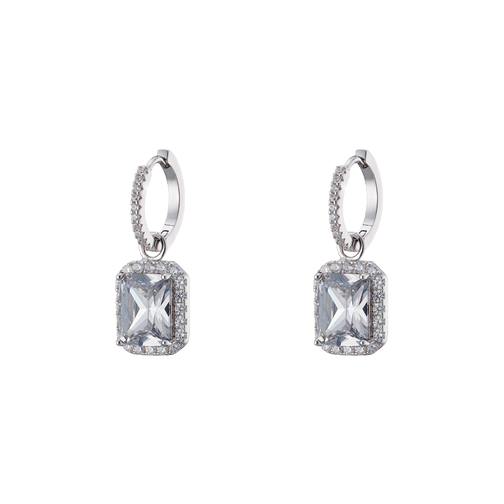 Σκουλαρίκια Kate Gifting ασημένια κρικάκια με ορθογώνιο λευκό κρύσταλλο και λευκά ζιργκόν