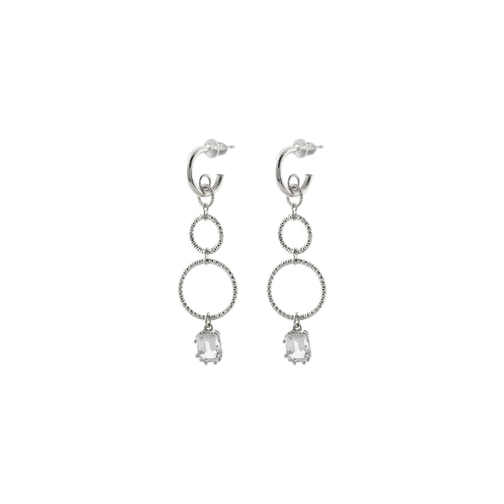 Σκουλαρίκια Jacky ασημένια με διαμαντέ κρίκους και λευκό ζιργκόν