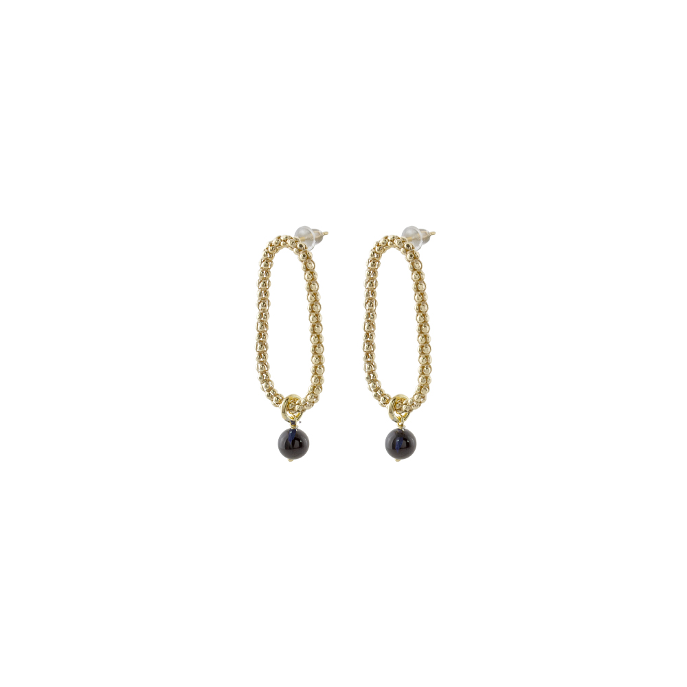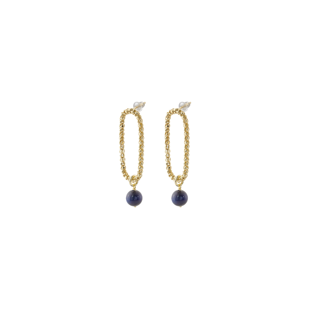 Σκουλαρίκια Holiday ασημένια επίχρυσα με μπλε tiger eye πέτρες και καδένα