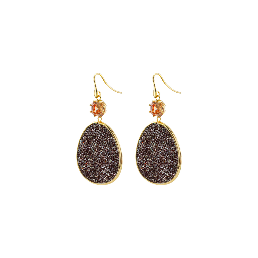 Σκουλαρίκια Amal ασημένια επίχρυσα με καφέ κρύσταλλα και champagne ζιργκόν