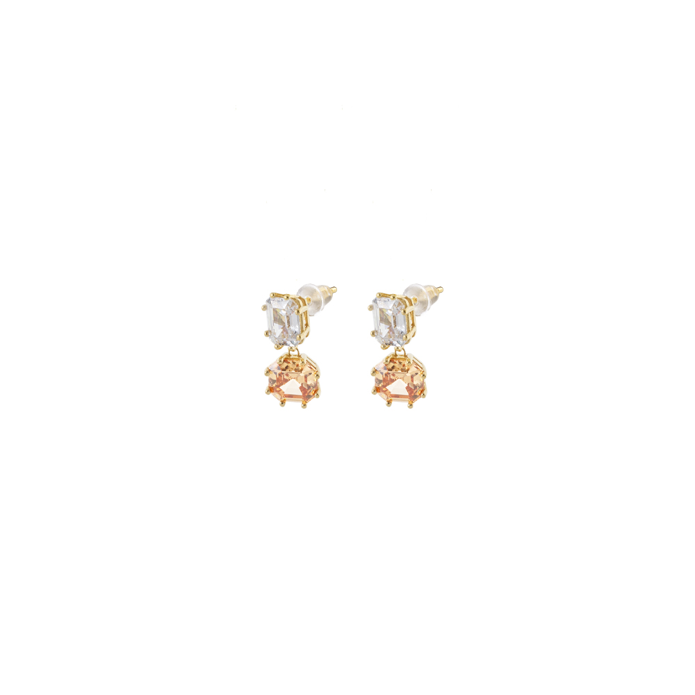 Σκουλαρίκια Gifting ασημένια επίχρυσα με λευκό και champagne ζιργκόν