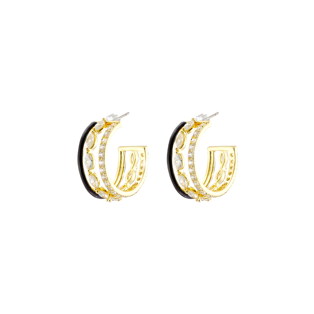 Σκουλαρίκια Mosaic μεταλλικά επίχρυσα κρίκοι 2.3 cm με σμάλτο και ζιργκόν