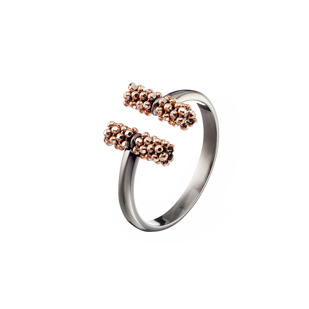 Εντυπωσιακό δαχτυλίδι με άνοιγμα και στοιχεία με πολύπλευρο σχέδιο στις άκρες, φτιαγμένο από ασήμι 925.