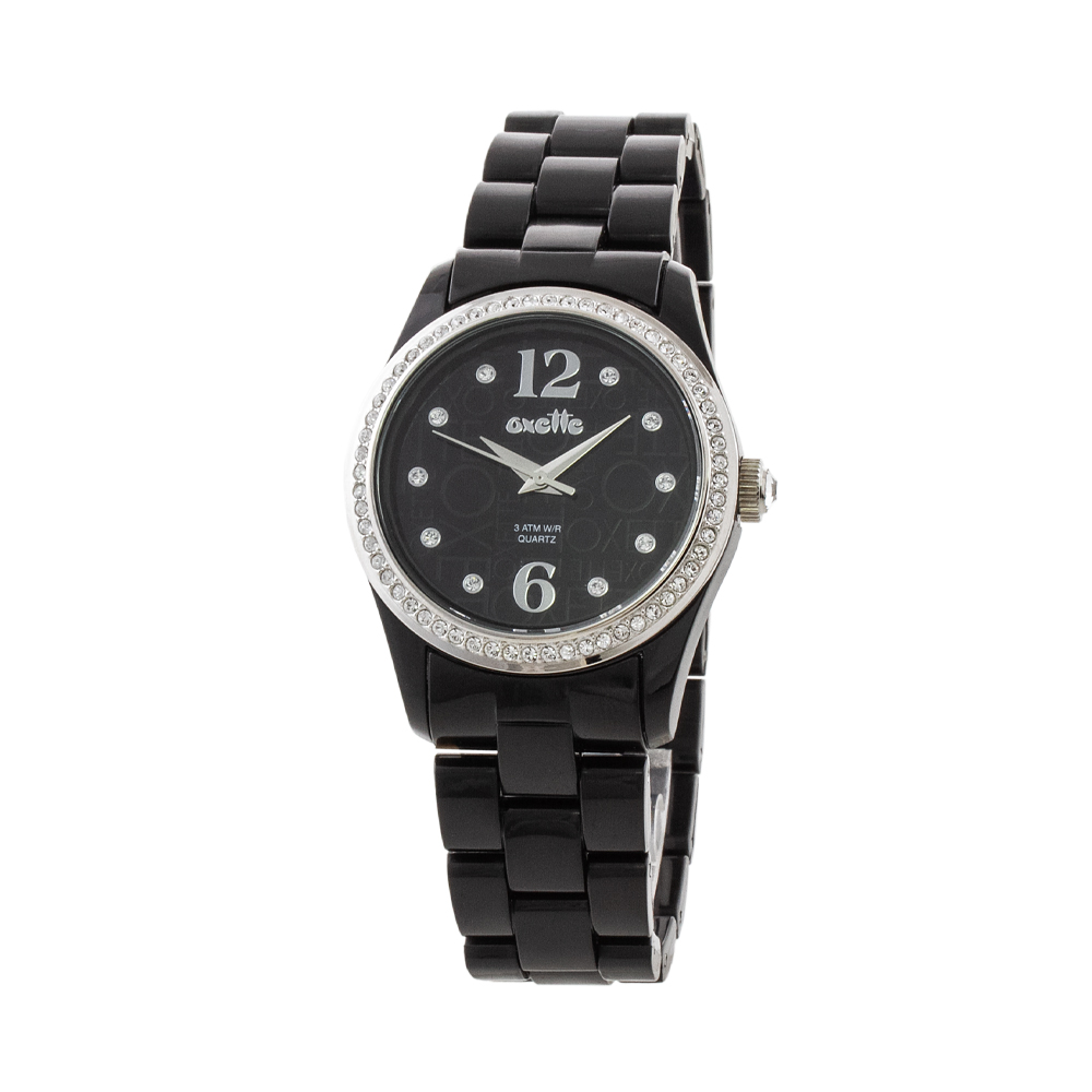 Ρολόι πλαστικό με μαύρο πλαστικό μπρασελέ και κρύσταλλα